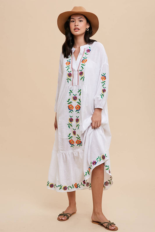 COTTON EMBROIDERED RESORT DRESS