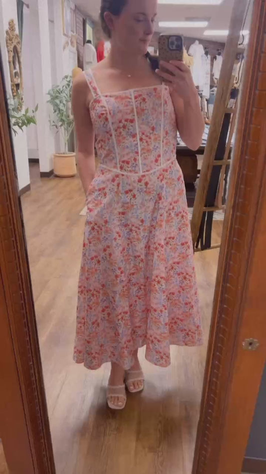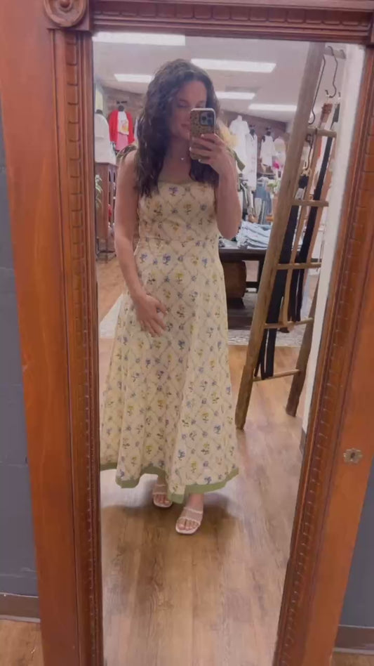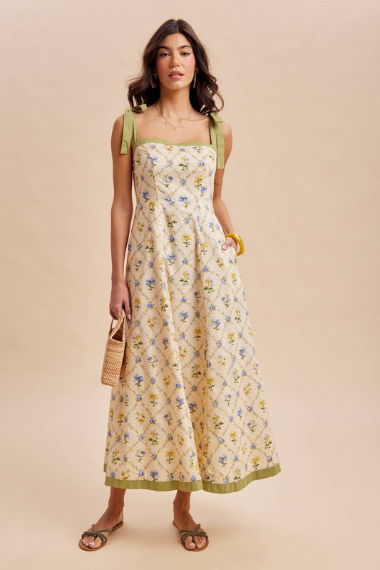 CONTRAST PIPED FLORAL MAXI DRESS