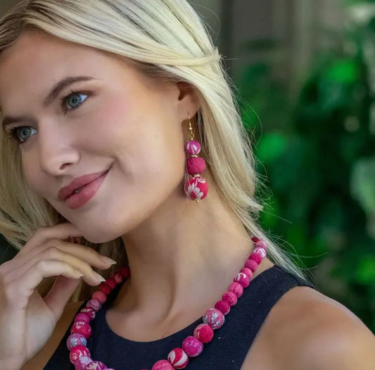Aasha Trio Blush Beaded Earring by Anju