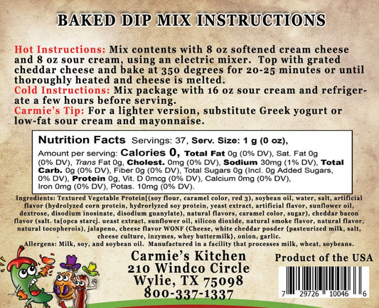 Carmie's Kitchen Baked Bacon Jalapeno Popper Dip Mix