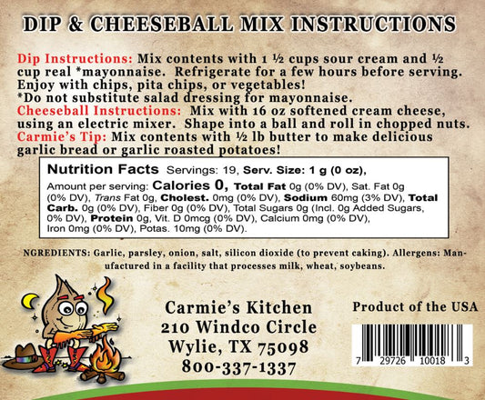 Sold outCarmie's Kitchen JR's Ranch Dip Mix