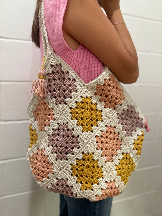 Hand Crocheted Crossbody Purse (Blue/Neautral)
