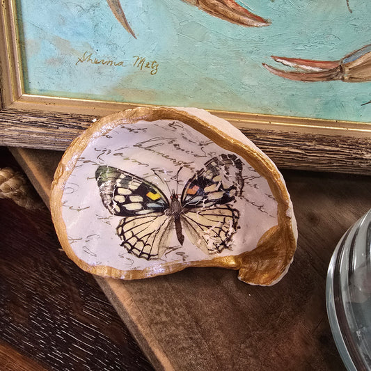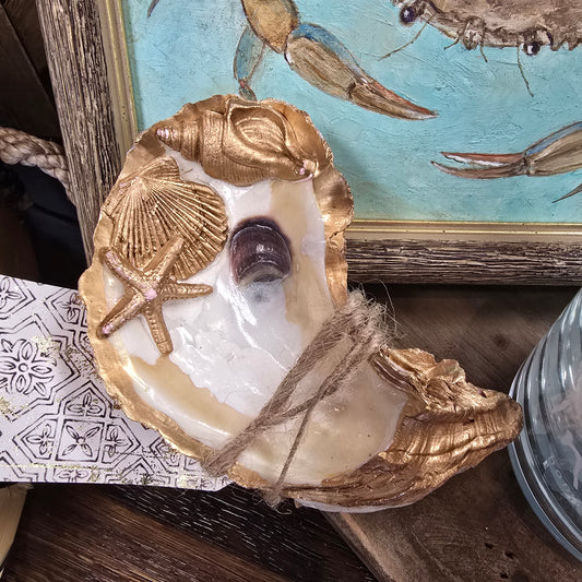 Handmade Embellished Oyster Shell Ring Dish with Gold Leaf