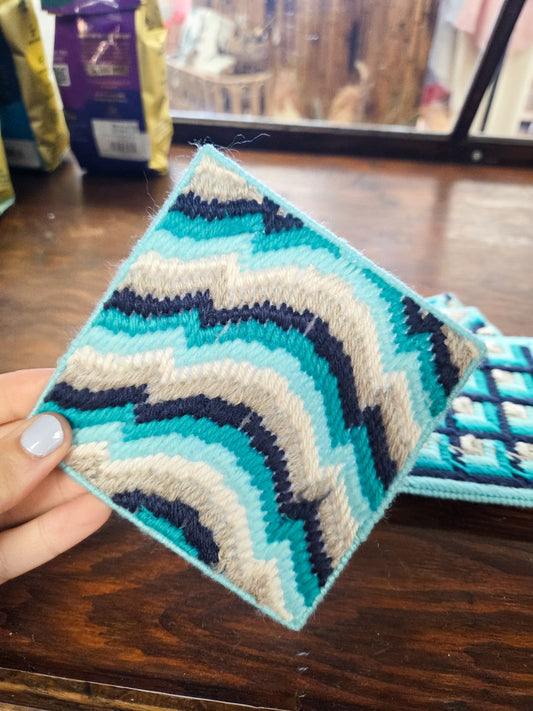 Handmade Bargello Coaster Set of 4 (Blue/Red)