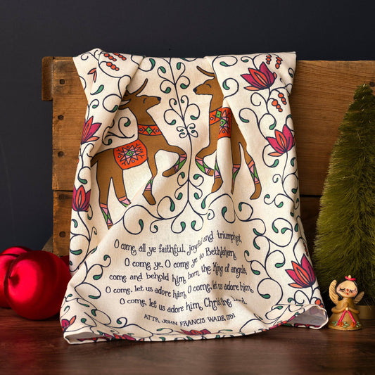 Cotton & Linen Printed Tea Towel with Holiday Saying (3 Styles Available)