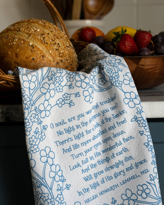 Turn Your Eyes Upon Jesus Hymn Tea Towel