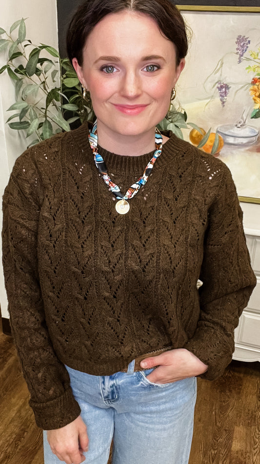 Analea Cropped Cable Knit Sweater in Brown (Small to Large)