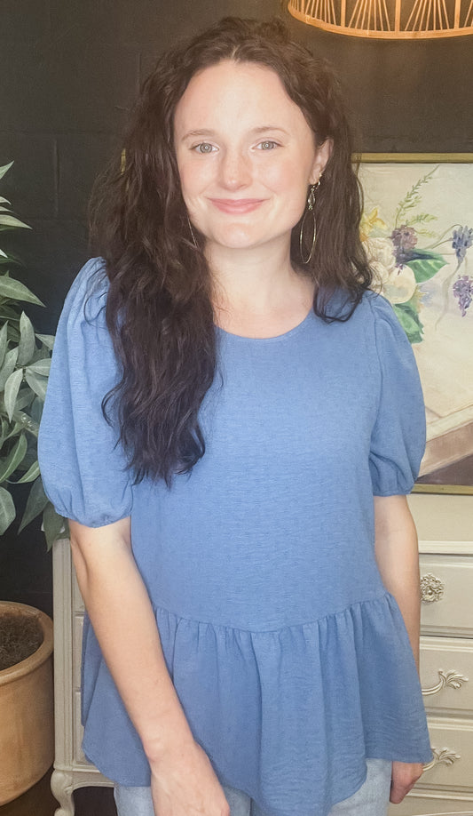 Gratitude Light Blue Textured Peplum Top (Small to Large)