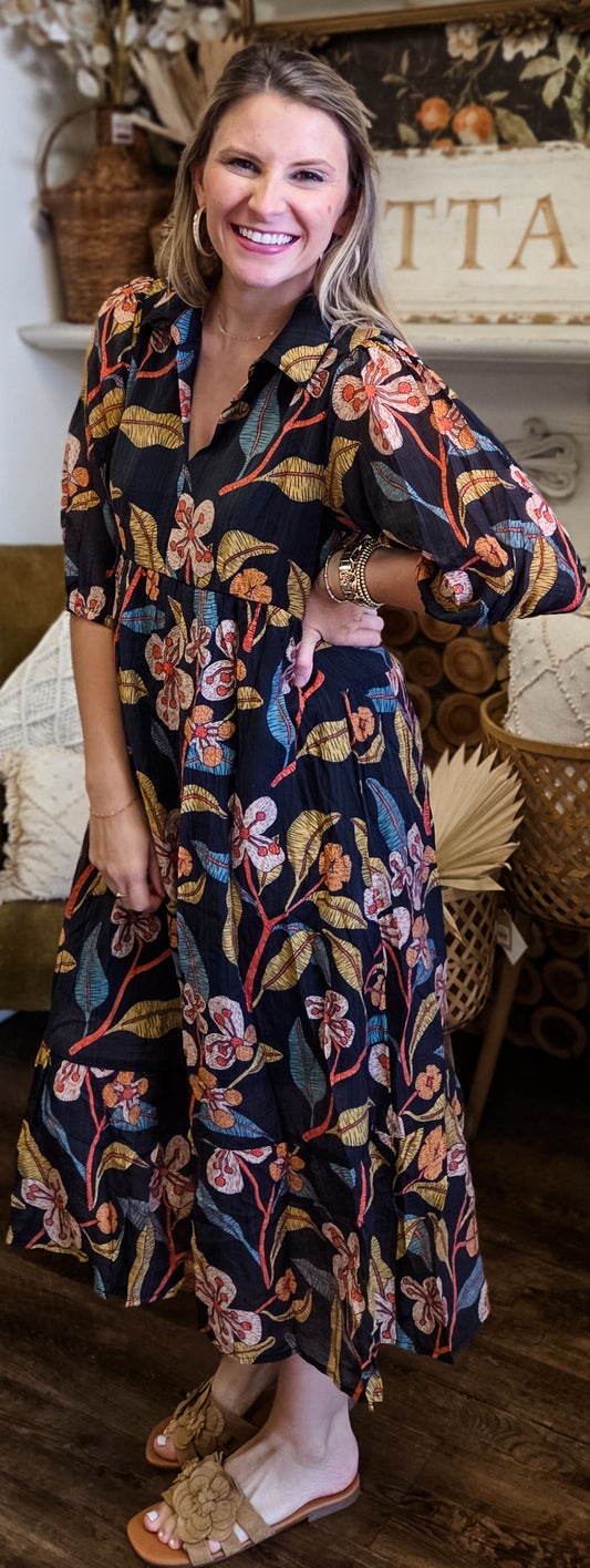 Pure Joy Floral Midi Length Dress (Small to 2XL)