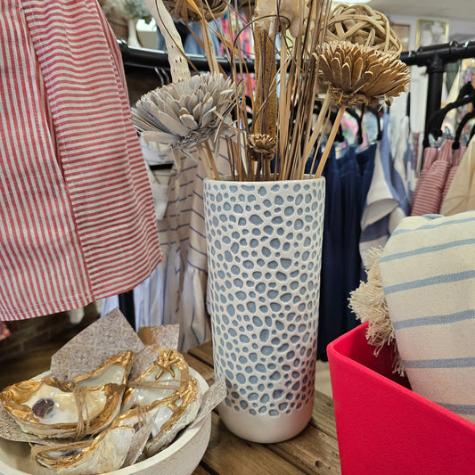 Hand-Painted Stoneware Planter with Paulownia Wood Saucer