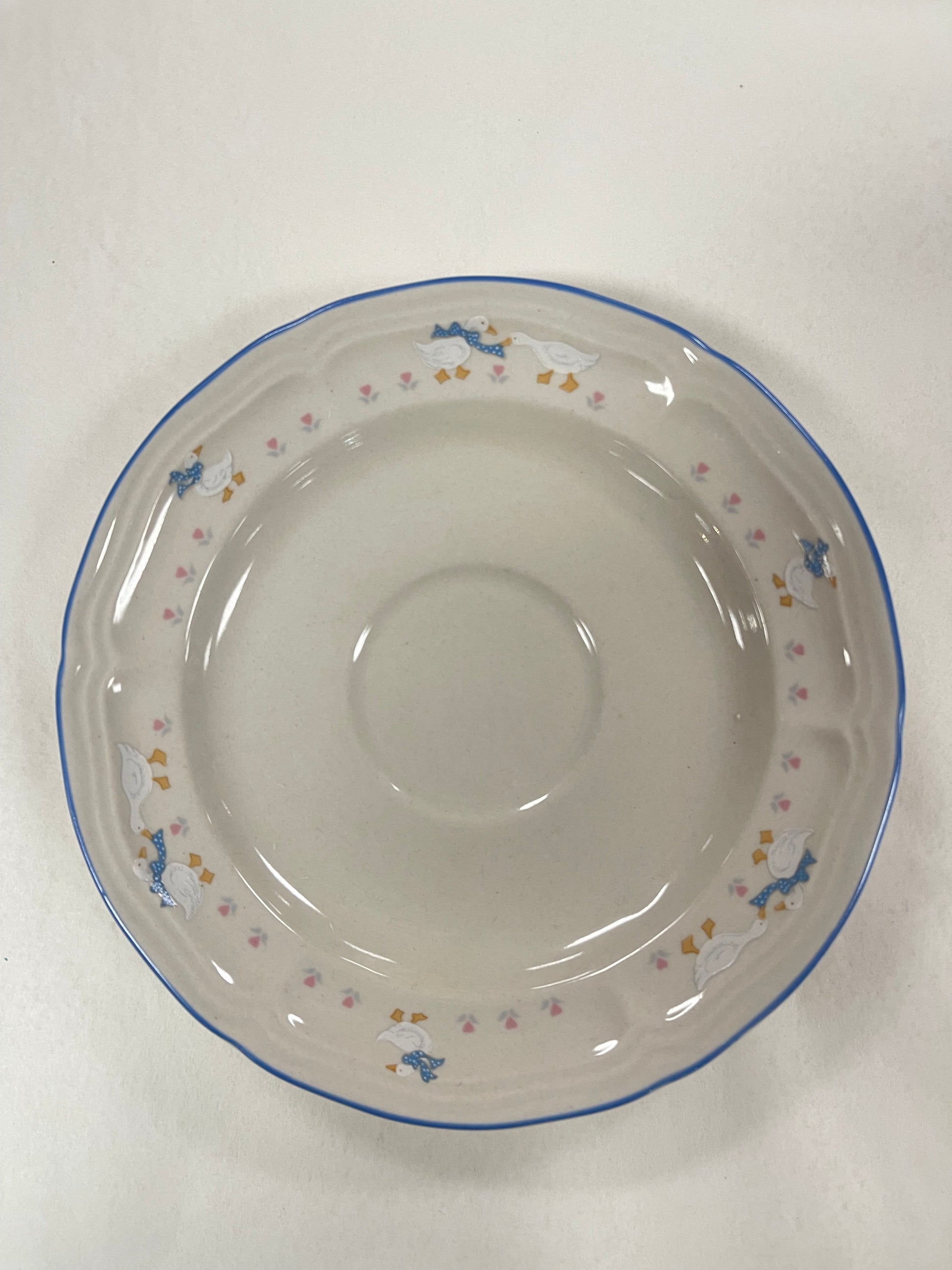 Aunt Rhody Saucer 3/4" Goose Brick Oven Round Stoneware Blue White