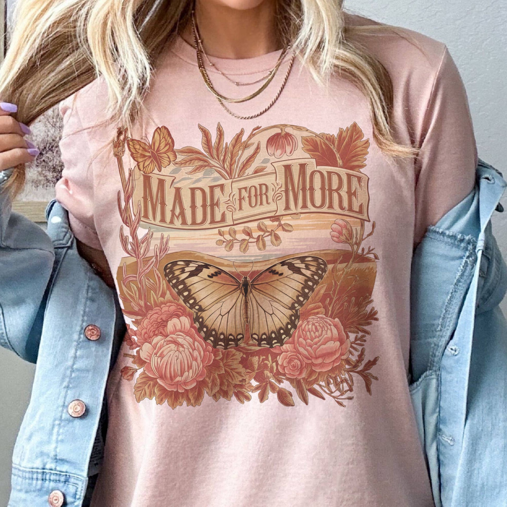 Inspire and uplift with our "Made for More" Butterfly Floral Tee — a beautiful blend of encouragement and soft feminine style. Featuring delicate florals and graceful butterflies, this graphic tee reminds us that we’re all growing, transforming, and made for something greater.