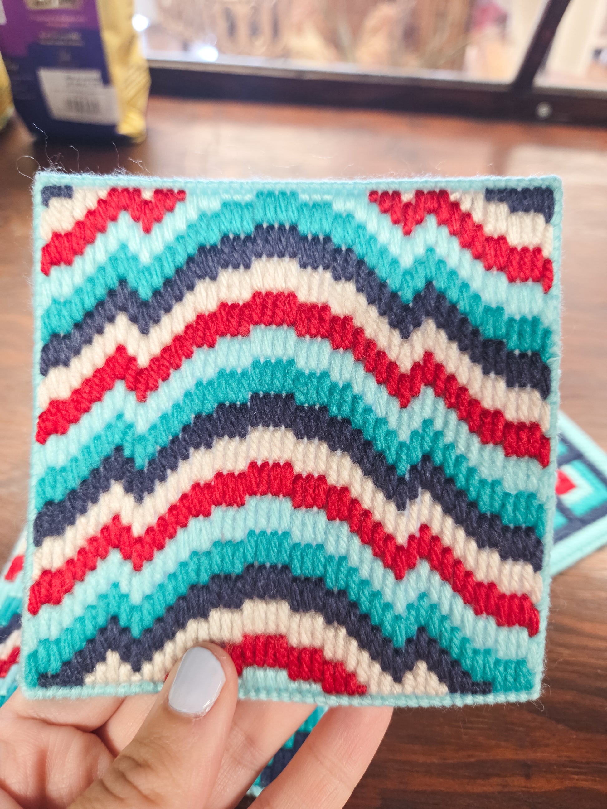 Handmade Bargello Coaster Set of 4 (Blue/Red)