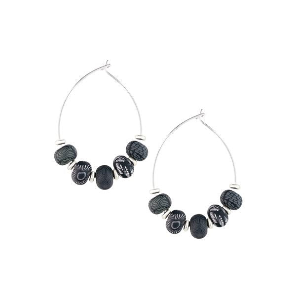 Add effortless charm to any outfit with these Midnight Palm Bead Hoop Earrings. Crafted with a silver finish, these dangle hoop earrings are 1.5" long and 1" wide, perfect for everyday wear. Jilzarah Jewelery is made of polymer clay in small batches, so colors may vary slightly.