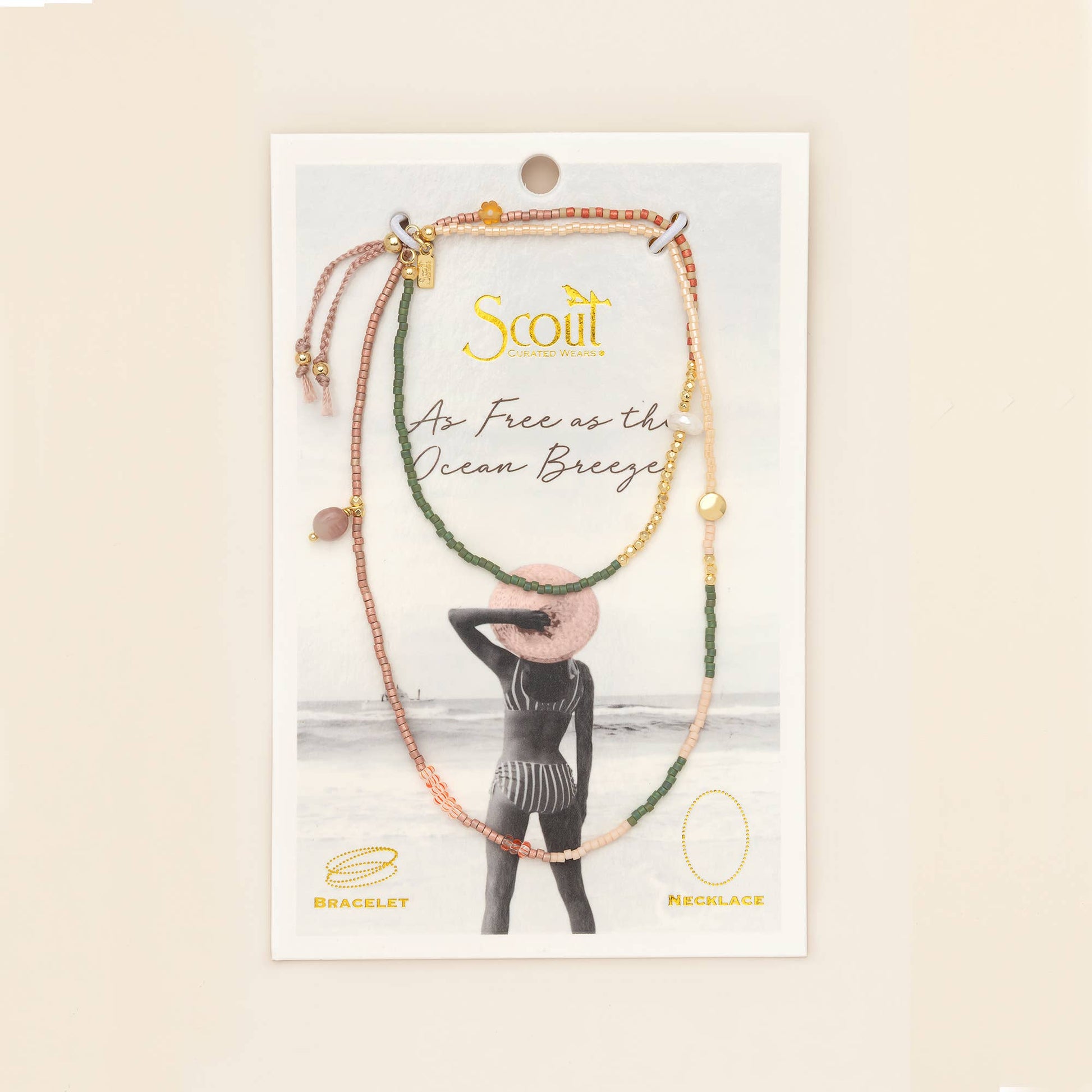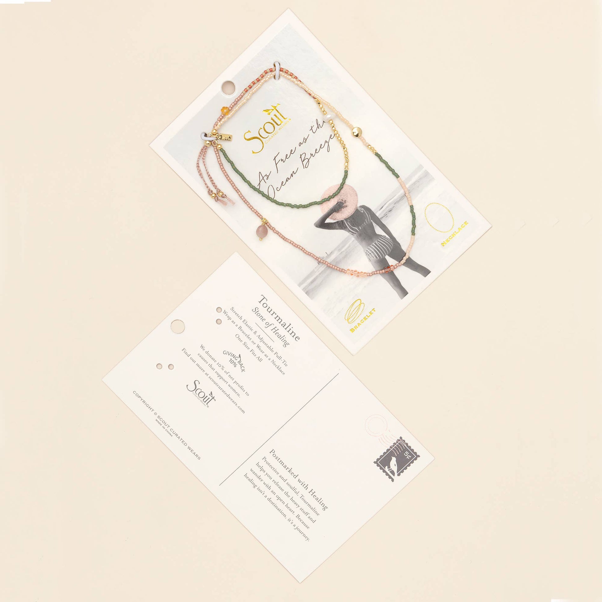 Hand strung with Japanese Miyuki Beads, organic pearls, and meaningful stones, each bracelet/necklace wrap comes packaged on a nostalgia-inspired postcard that celebrates life's journey & heartfelt connections.