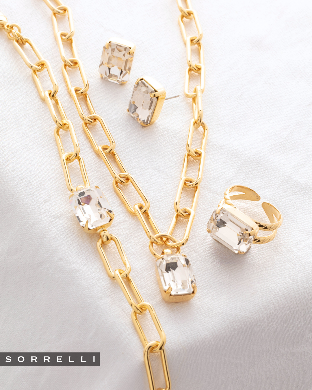 The bold geometry of a single emerald-cut crystal grounds this modern chain bracelet. Substantial paperclip links provide an airy contrast to the structured center stone, creating a piece that moves effortlessly as you go about your day. An extension chain allows you to tailor the fit for comfortable wear. It works quietly on its own but holds its ground perfectly when layered with your other favorite chains. From Sorrelli's Crystal collection in our Bright Gold-tone finish. (SKU: BFS77BGCRY)