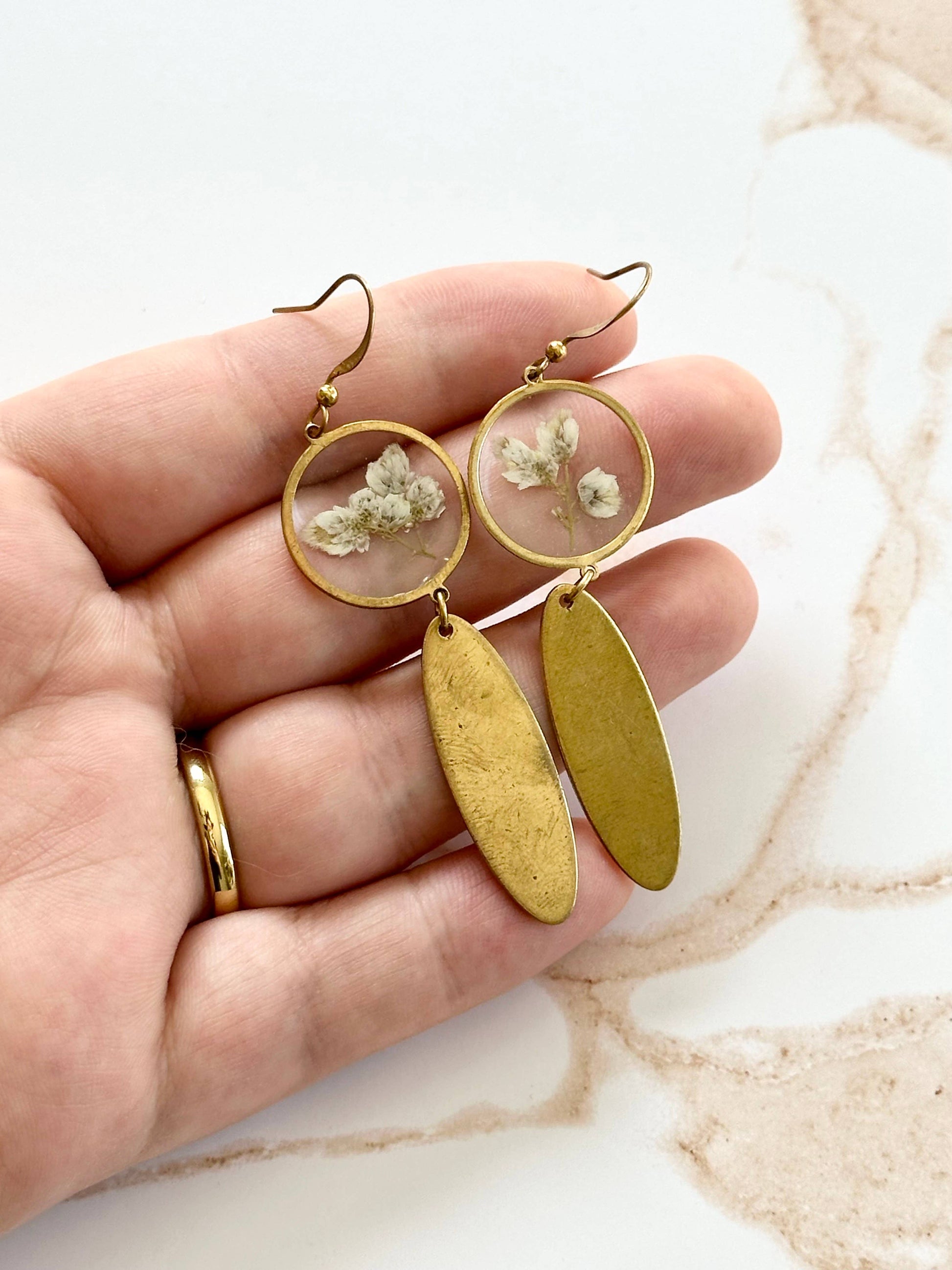 Pressed Flower Jewelry | Minimalist Jewelry | Brass Jewelry