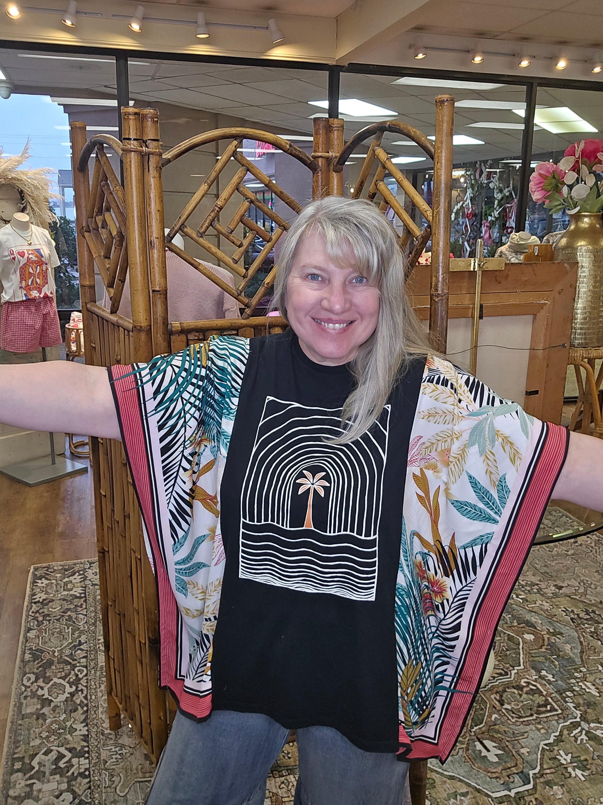 The Miami Vice Upcycled Top offers a comfortable oversized fit that suits most body types with ease. Each piece showcases unique artistic flair, making every top truly one of a kind. Crafted from carefully repurposed materials, this top not only adds style to your wardrobe but also helps reduce waste by saving previously loved items from ending up in landfills. Embrace sustainable fashion without compromising on creativity or comfort.