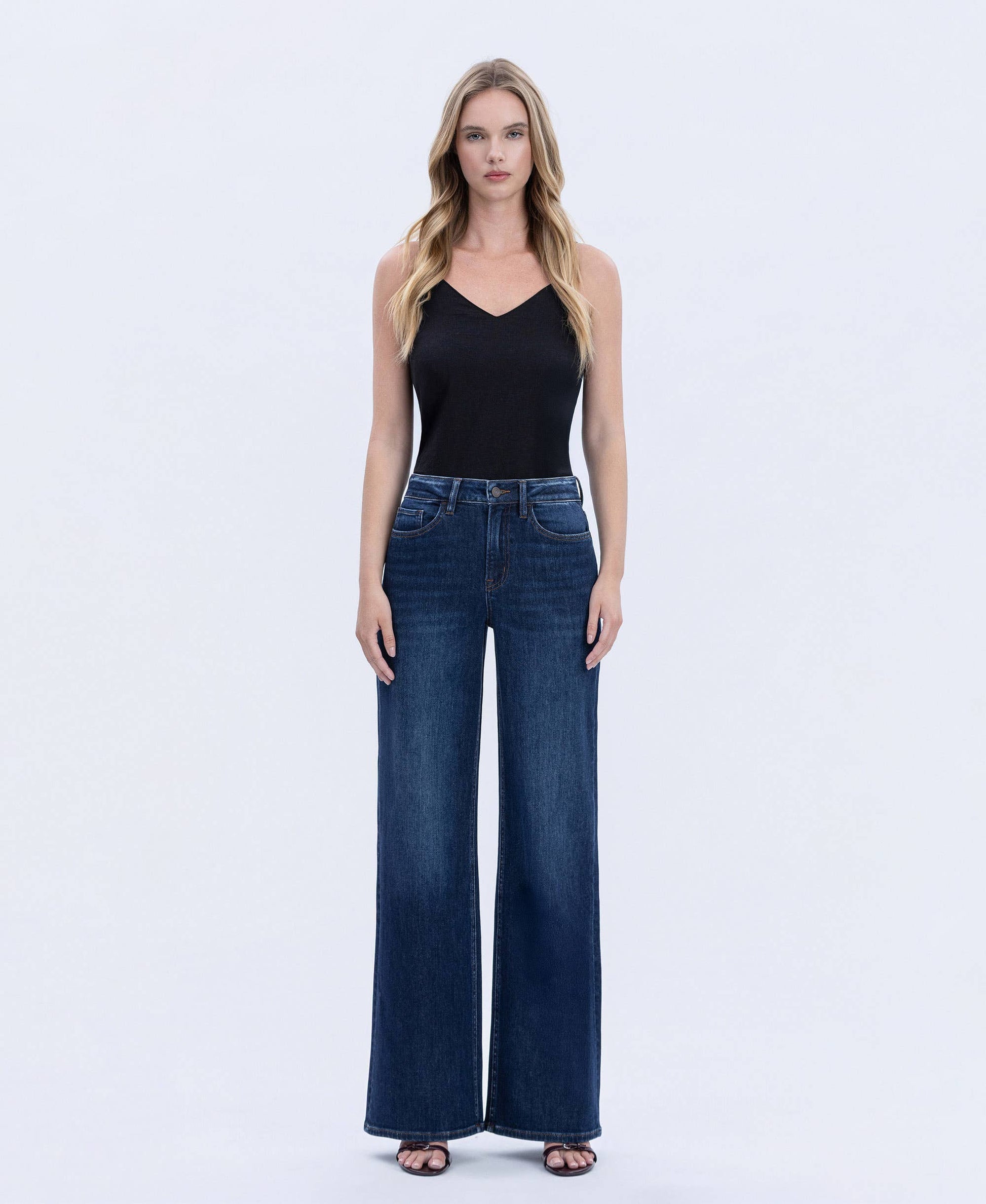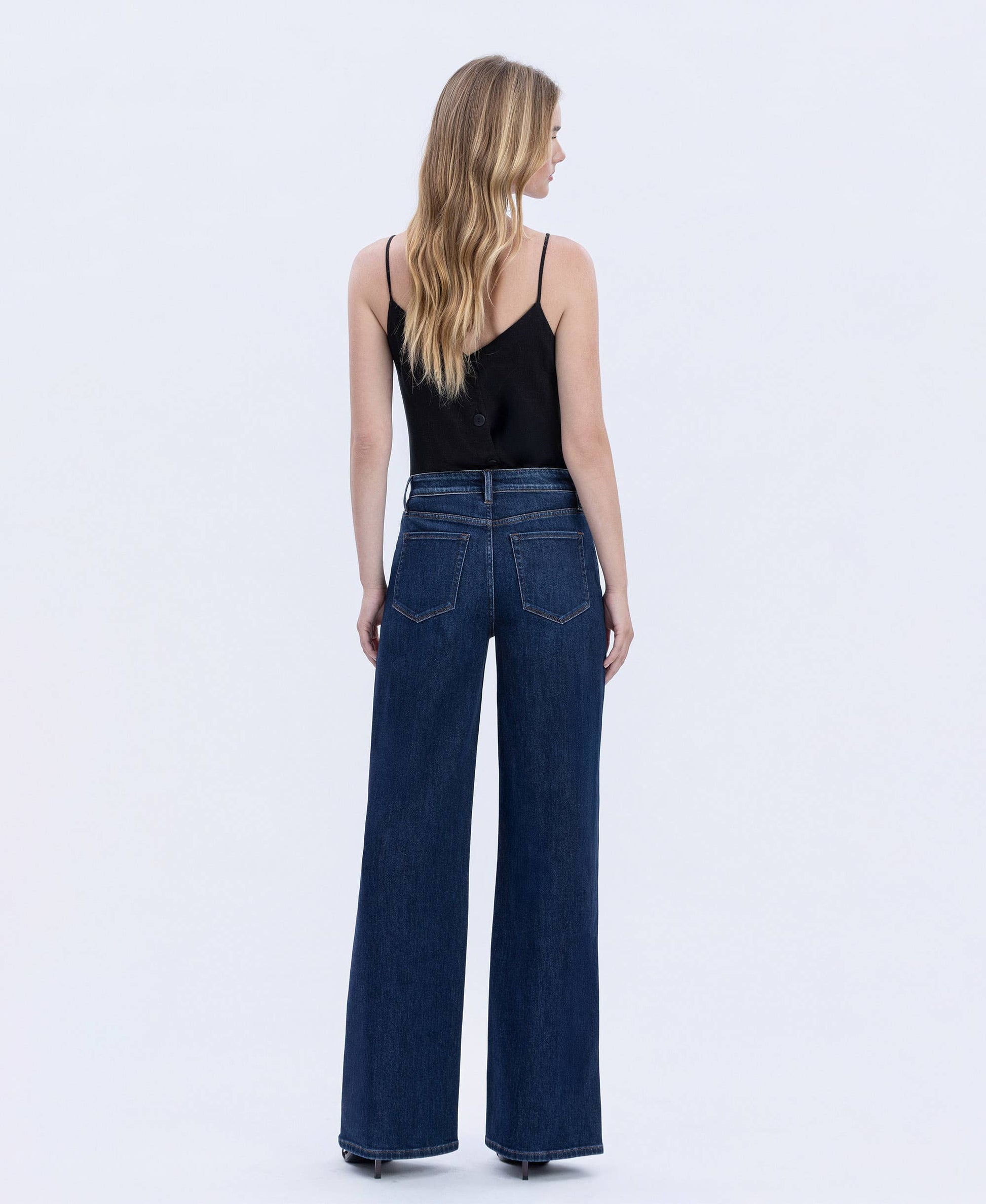 Rock that confident silhouette with these ultra-high-rise wide-leg jeans. Crafted from stretchy dark denim, they feature a flattering 11" rise, roomy 22" leg opening, and a polished finished hem for an effortlessly cool vibe. The classic five-pocket design keeps things timeless while comfort stretch fabric moves with you all day. Perfect for styling with everything from crop tops to oversized tees. (Inseam: 33" | Model: 5'10" wearing size 26)