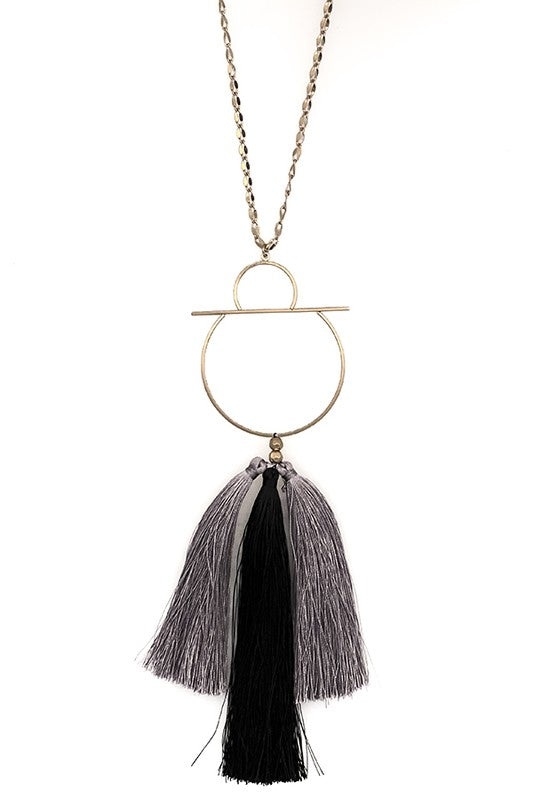 Lengthen your style with this danglin' Tassel Ring Pendant Necklace — about 28" of fashionable flair!
