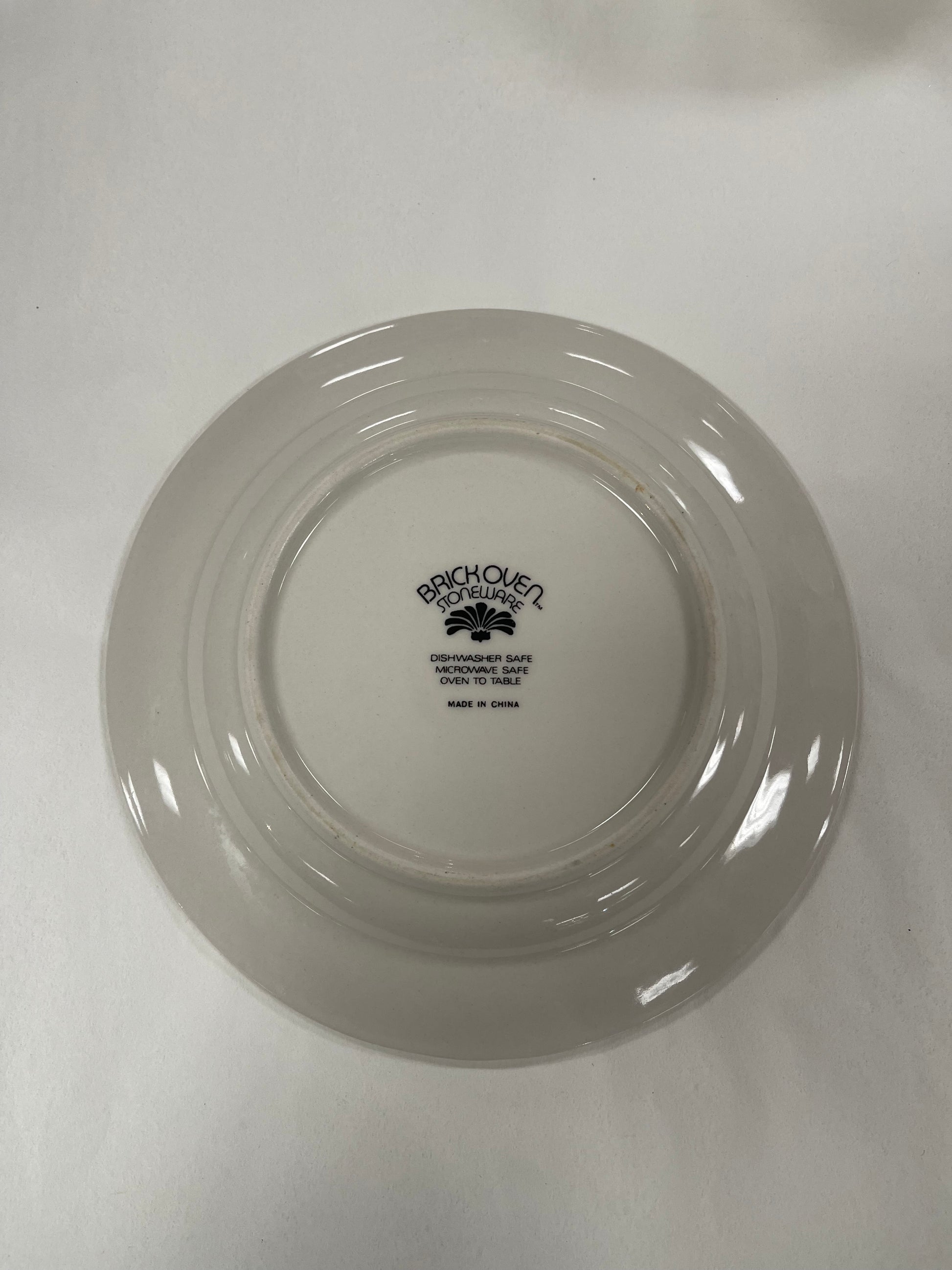 Experience the charm of a bygone era with our Vintage Brick Oven Stoneware "Aunt Rhody" Dinner Plate. Handcrafted for durability and beauty, this plate features a charming goose design with a blue bow. Enjoy your meals in style and add a touch of nostalgia to your dining experience.