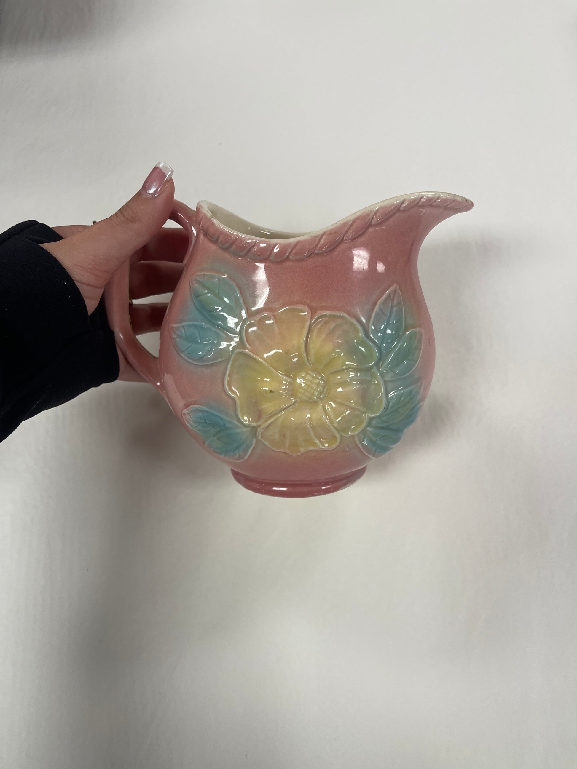 VTG Hull Pottery #52~2408 Pitcher Jug Pink Dogwood Pink Flower Made In USA 5.5"