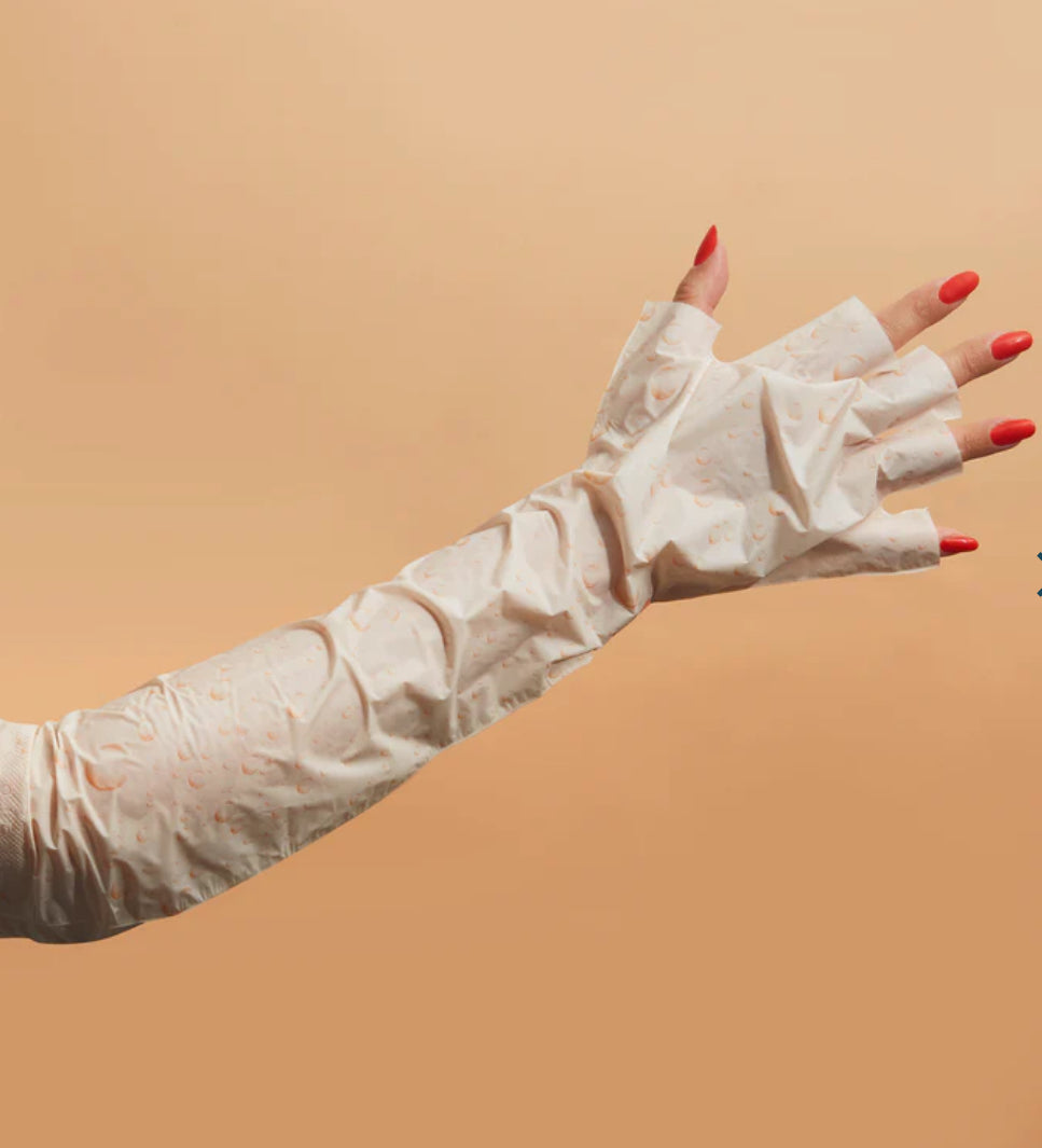 Treat your hands and arms to some well-deserved TLC with our Youth Therapy Elbow-High Gloves. Infused with shea butter and niacinamide, these vegan collagen gloves deeply moisturize and brighten your skin from your hands to your elbows. Enjoy softer, smoother, and more youthful-looking skin in just 15 minutes. Perfect for manicures with removable fingertip design!